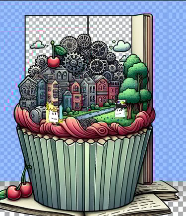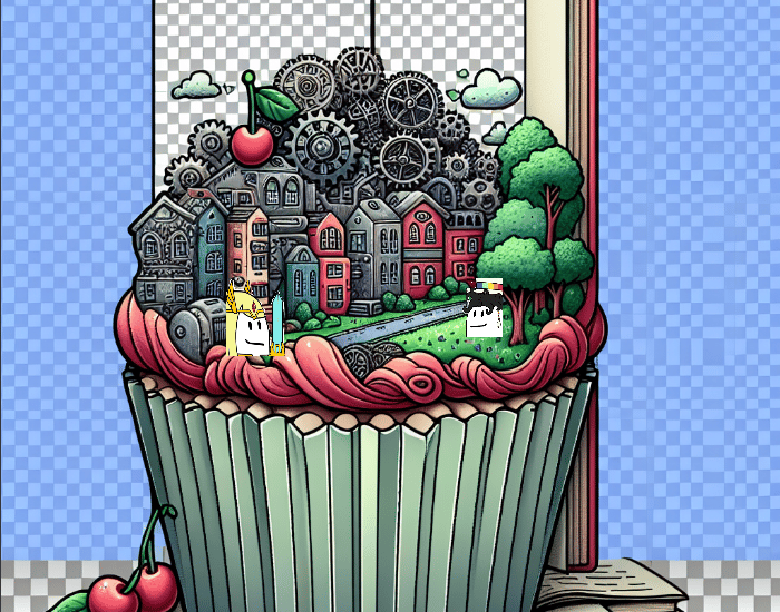 Join us on a whimsical journey through creativity, technology, and ecological awareness with our unique mechanical cupcake characters from the enchanting city of Spindletop.