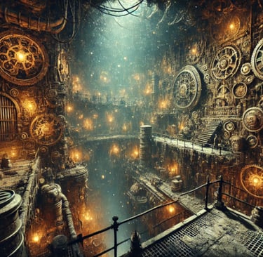 The Undercity is the backbone of Spindletop, where the first mechanisms of the city were forged by visionaries like Penelope Gearspring. Over time, as new inventions took center stage and technology advanced, this underground labyrinth was left behind. Today, it serves as a refuge for those overlooked by progress—humans and cupcakes alike. It’s a maze of abandoned workshops, flickering lanterns, and makeshift homes, where the hum of forgotten machines echoes faintly in the shadows.